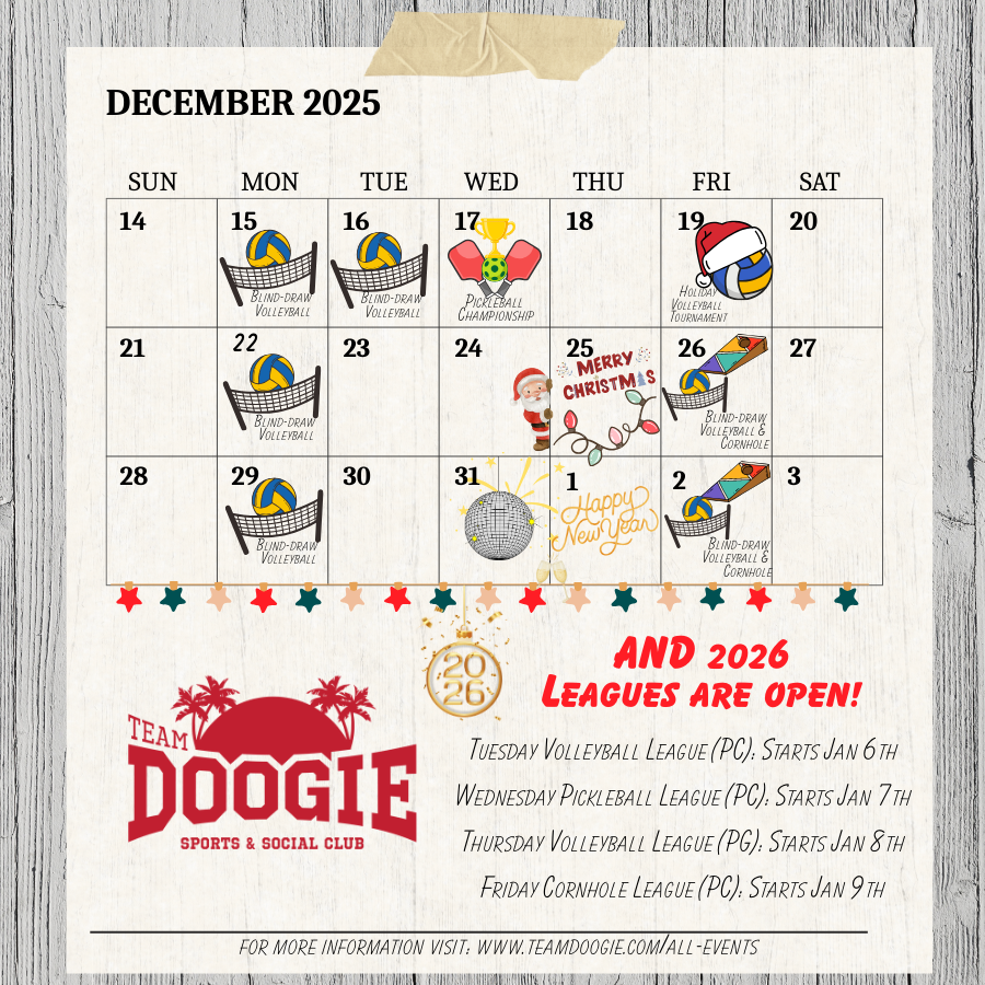 A new year always brings that little spark of motivation. Maybe you promised yourself you’d move more, get out of the house, or finally meet some new people. Good news: you don’t have to do any of that alone. Team Doogie Adult Sports & Social Club is here for movement, connection, and a whole lot of fun, and January is the perfect time to jump in.